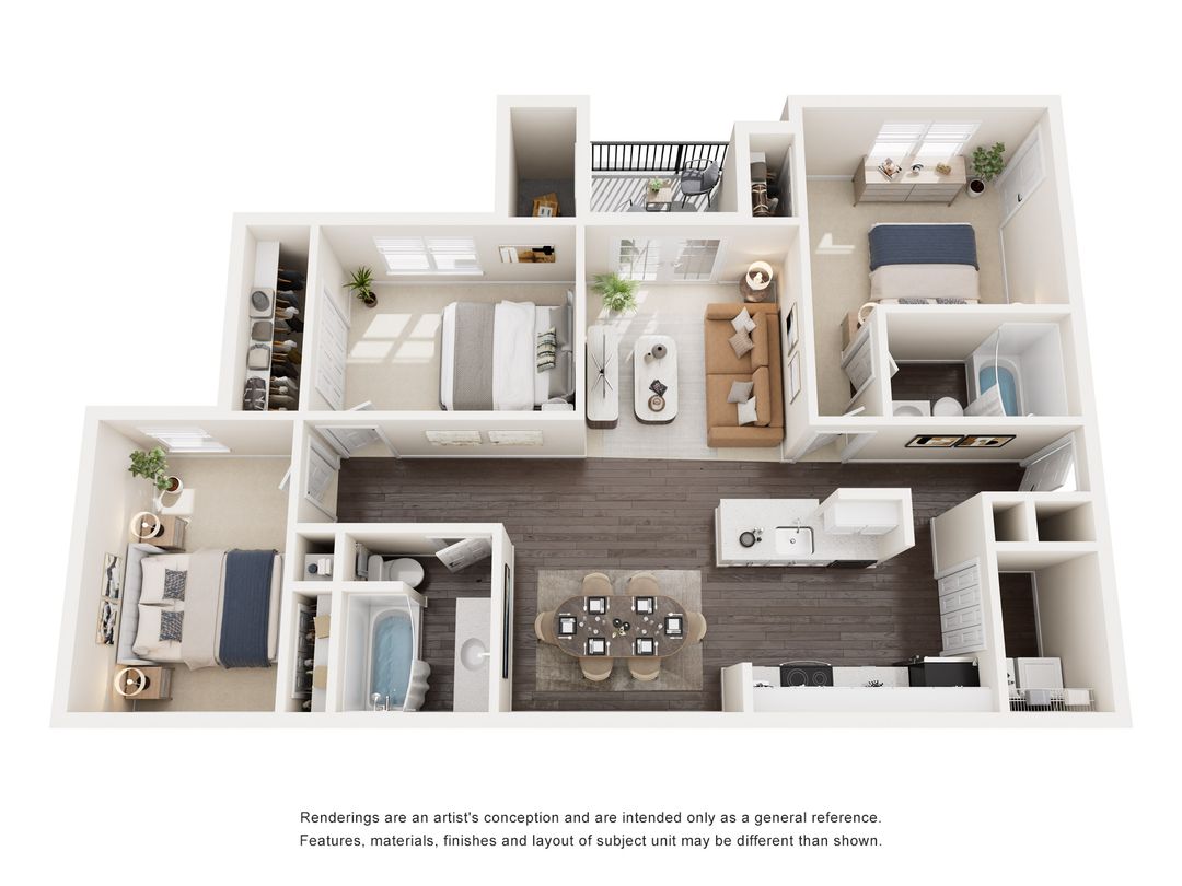 Floor plans are provided for information as guidance only. We endeavor to provide reliable and accurate particulars to provide renters with a valid representation of the apartment home, but they should not be relied upon. Floor plans are not to scale and should be used as a guide only. The property elevations, materials used, style, and position of the windows and balconies (if applicable) can all differ. Property room dimensions can vary. Although all care has been taken to ensure that this information is correct, contents do not constitute a contract, part of a contract, or warranty.